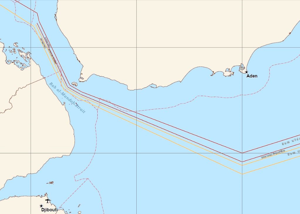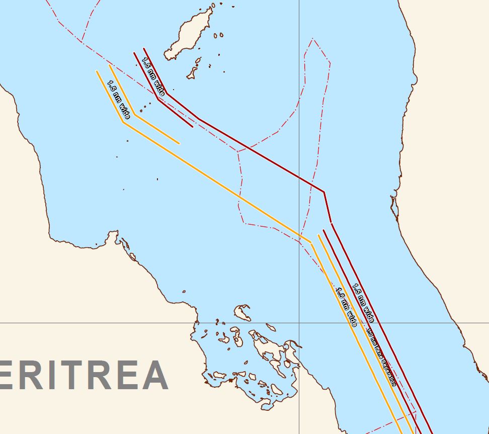 - Map of the two way route directly connecting the IRTC and the Bab Al Mandeb traffic separation scheme (BAM TSS), click here. Or click here for an enlarged copy;